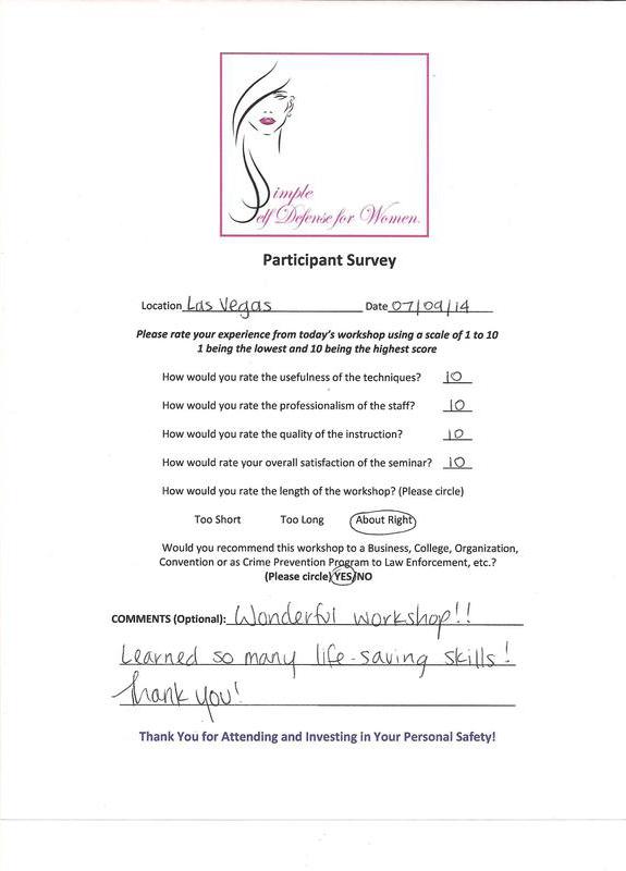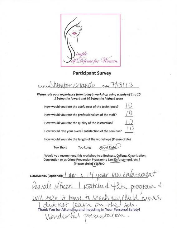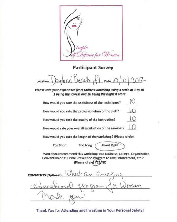 Simple Self Defense for Women® SEMINAR SURVEYS